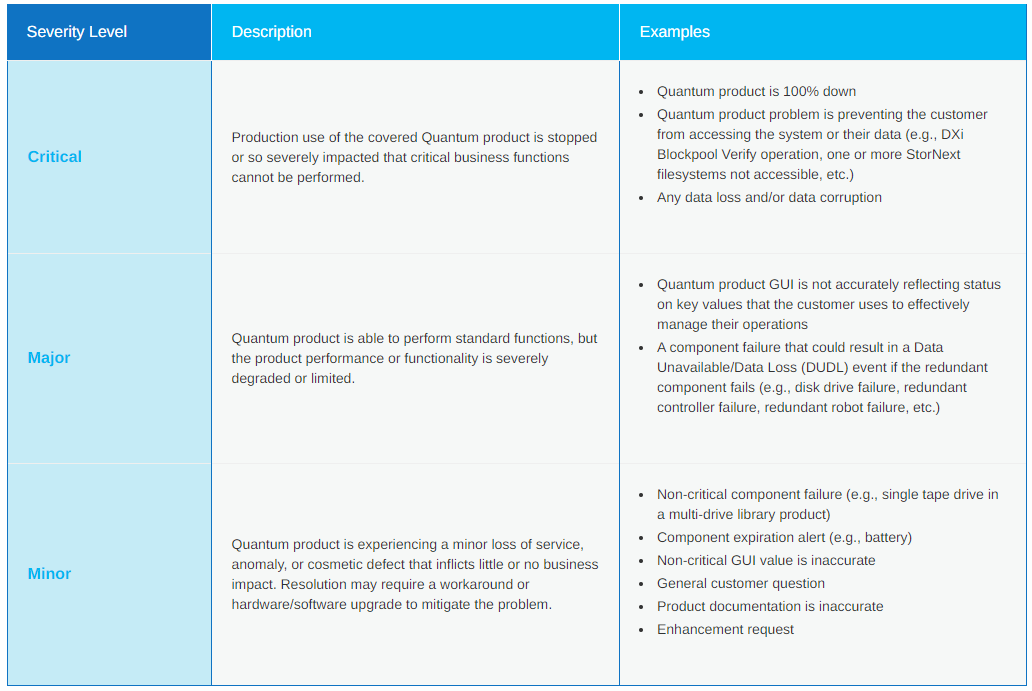 Quantum Severity Level Descriptions