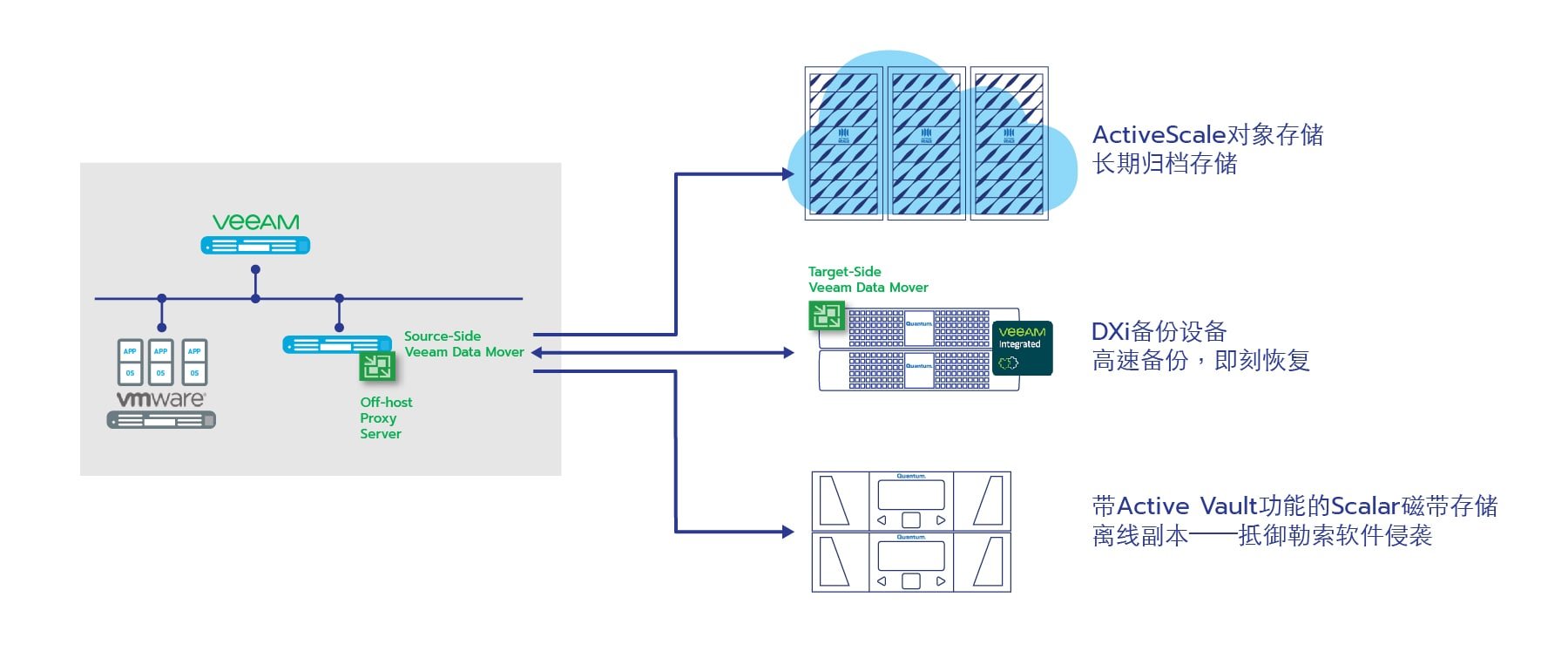 Quantum ActiveScale™是一套软件定义的对象存储产品,可提供海量的存储规模和最高级别的数据耐久度。ActiveScale软件的部署与管理工作操作简便,可为长期保留备份数据提供可靠的解决方案。ActiveScale软件作为一款可自我修复、拥有超高扩展性的对象存储系统,提供了Veeam Ready的永久数据存储基础架构,可为使用者提供了一种高度耐用、且性价比极高的公有云存储替代方案。